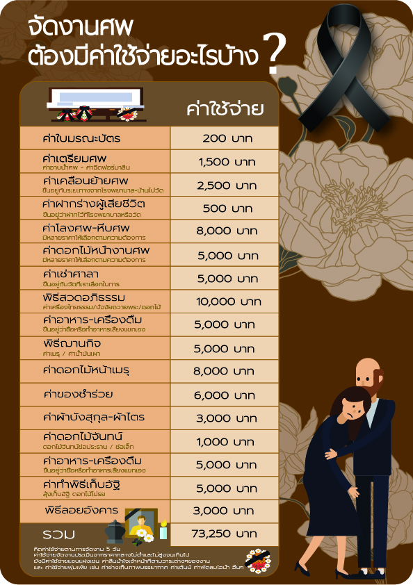 เมื่อมีการเสียชีวิตภายในบ้านและเราต้องจัดงานศพ งานขาวดำ การจัดงานศพหนึ่งงานซึ่งประกอบด้วย หีบศพ โลงศพ ดอกไม้งานศพ ดอกไม้หน้าหีบ ดอกไม้หน้าเมรุ ค่าเช่าศาลา และค่าใช้จ่ายอื่นๆ การที่เราได้รู้รายละเอียดคร่าวๆก่อน จะทำให้เราได้สามารถวางแผนการจัดงานได้อย่างรอบคอบไม่บานปลาย