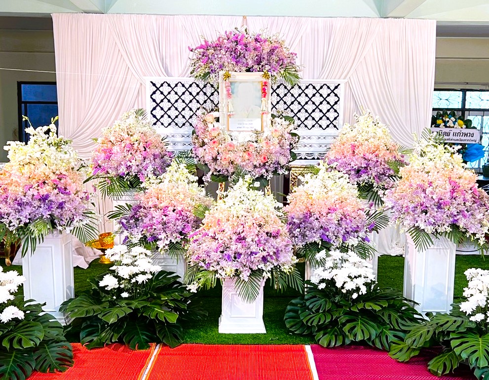 การจัดดอกไม้หน้าหีบศพ ดอกไม้หน้าโลงศพ แบบสวนดอกไม้